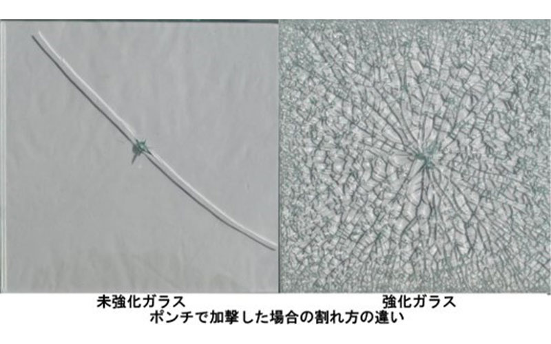 見た目は一般のガラスと同じですが、3~5倍程度の強度を持ちます。