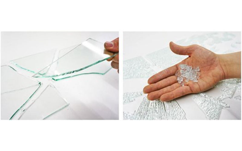 通常のガラスは鋭く刃物のように割れるのに対し、強化ガラスは粉々に砕け散ります。