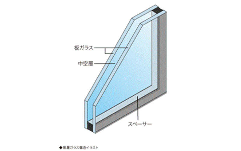 2枚のガラスに間に空気層を作り、乾燥剤を入れたスペーサーをその四方に回し込んで合わせたガラスのことです。
